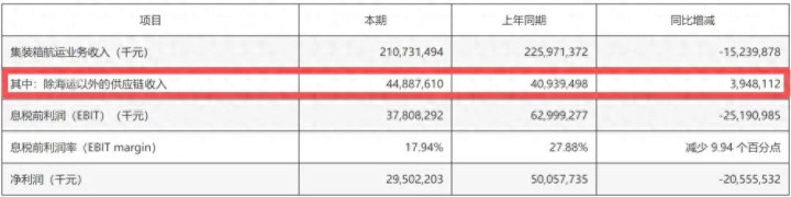 去年中远海控供应链收入近449亿,同比增长9.6%。